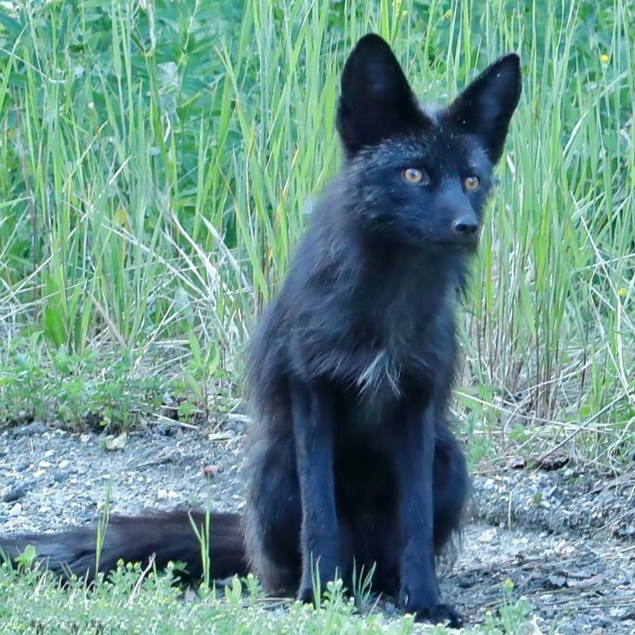 I gasped. My first silver fox or was it a black fox. It was hard to tell. The silver fox is black with a frosted look of silver-tipped hairs, while a black fox is entirely black due to a genetic mutation.