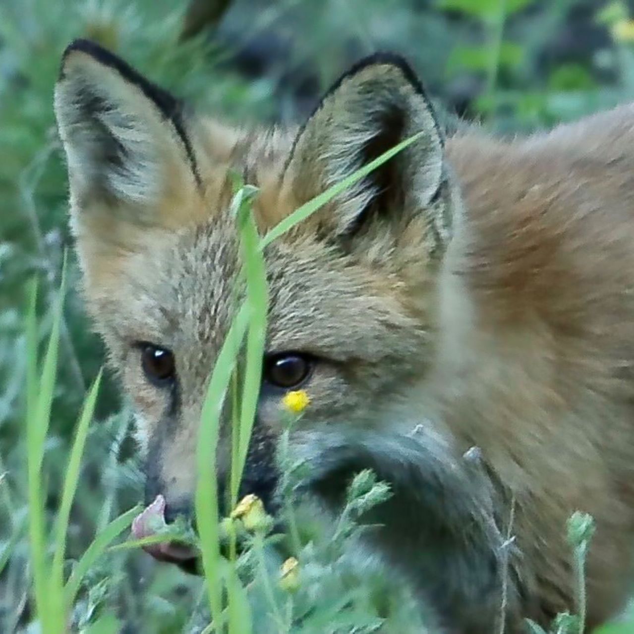 Early on another morning, I was driving up a road when around the curve I saw movement. First, it was a red fox feeding in the grass. She was beautiful in her red coat and youthful face looking innocent. Then more movement, and another fox, maybe a brother or sister appeared.