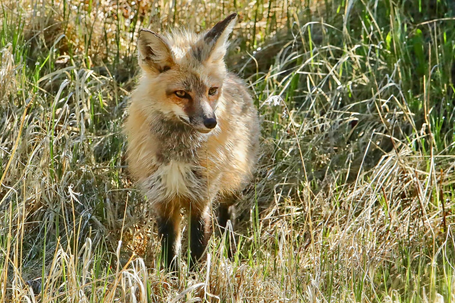 In RMNP, shooting deer, elk and moose is not a rarity. Chances to capture a fox, especially in more than a fleeting moment, are unique. This time with this fox so closely to us was a gift. Then, as if knowing this, the fox sat, looked in our direction, and yawned having become a bit bored. When we had several images, he stood and ran up the hill, crossing the road, and disappeared into the forest.