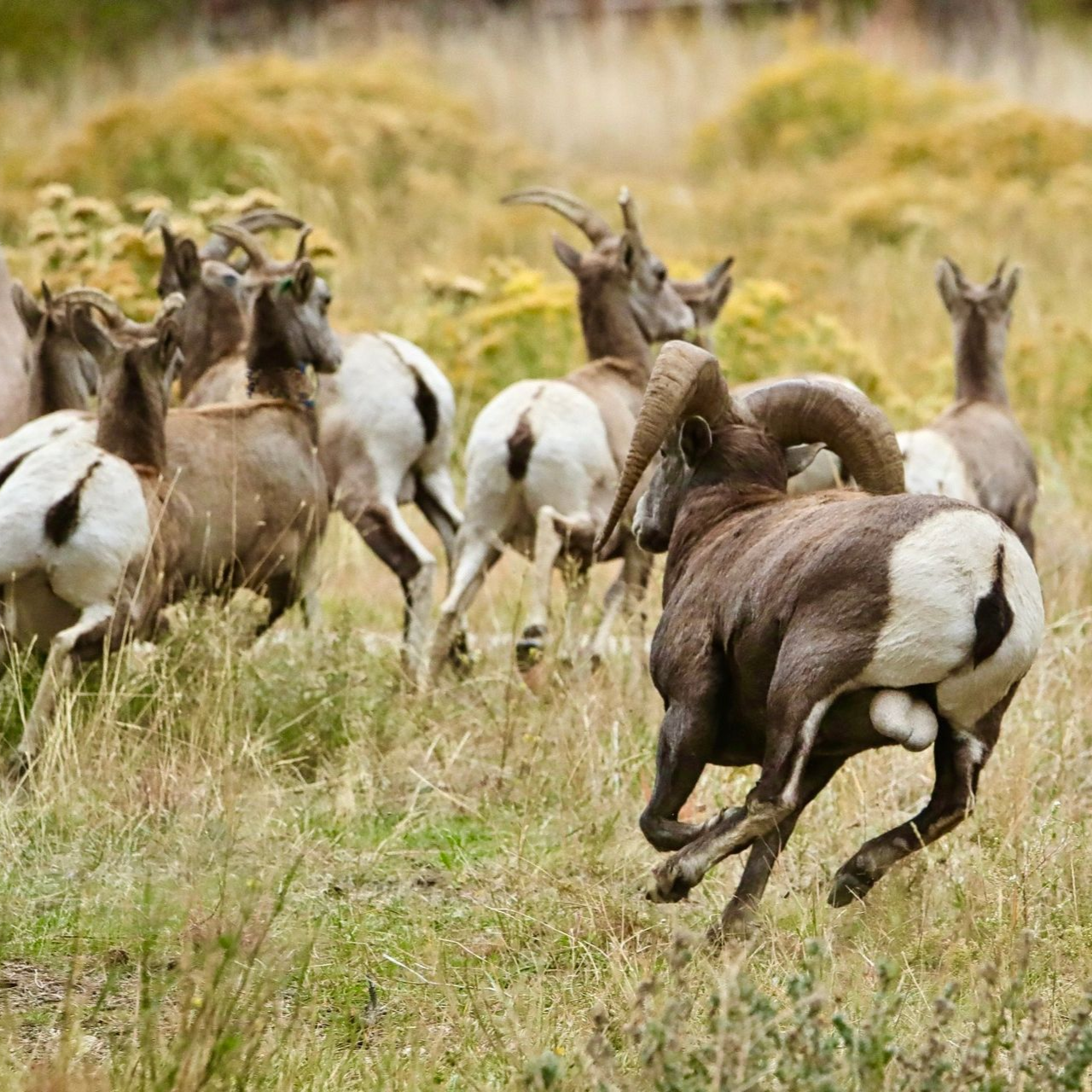 In 2021, I had captured my best bighorn pictures, so on October 16, 2022, I was again searching along the river excited to photograph more. That morning, I found the largest herd I’d seen. Probably forty bighorn in an open area, the rut active with rams chasing ewes.
