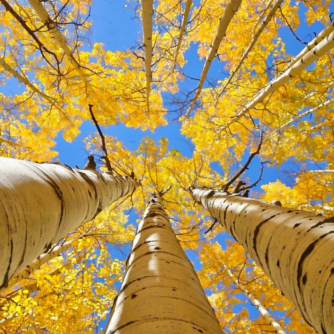 Because they share a root structure, an entire area reaching up to 100 acres can be from one single aspen organism. This means all of the aspen’s leaves emerge at the same time in spring and in the fall when the leaves turn gold. Thus creating spectacular foliage displays.