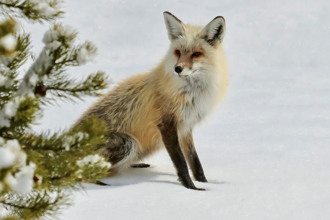 The best fox last year in Yellowstone was the first fox. I was with a group of photographers, and we spotted him in an open field, yellowish-red against the snow. We exited the SUV, standing on the road’s edge watching him navigate the field.