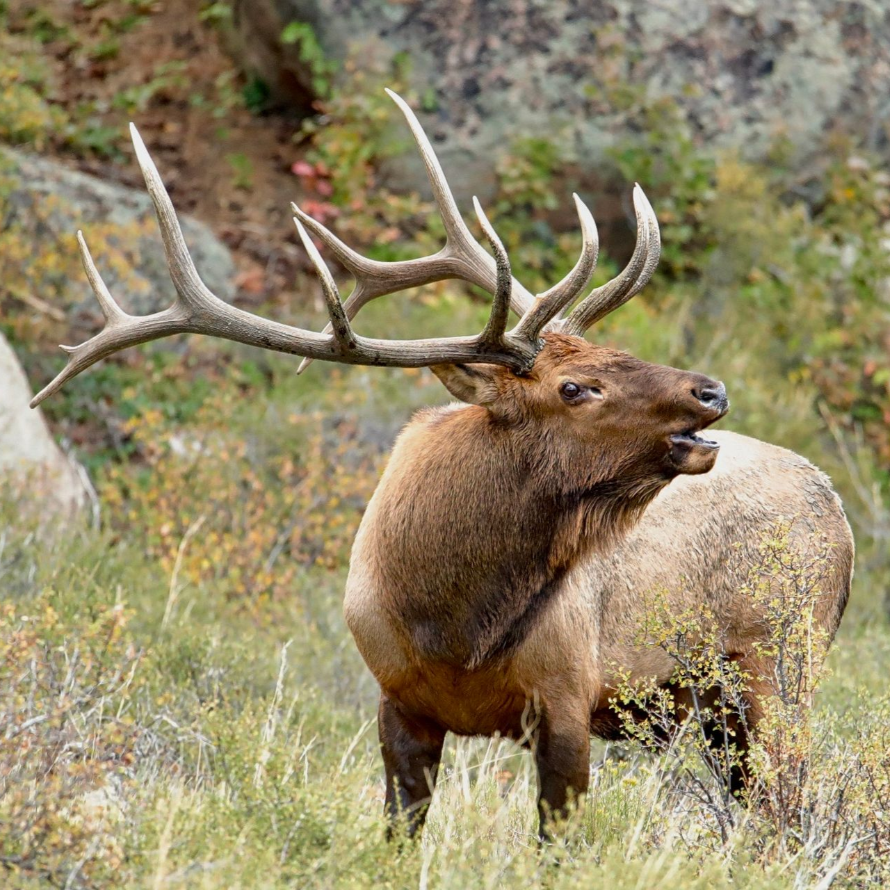 He had come full circle migrating from 7500 ft to nearly 12,000 ft and back down for the fall rut by Lake Estes. He was an impressive elk, willing to fight for his harem, and the cows must have been attracted as they stayed close.