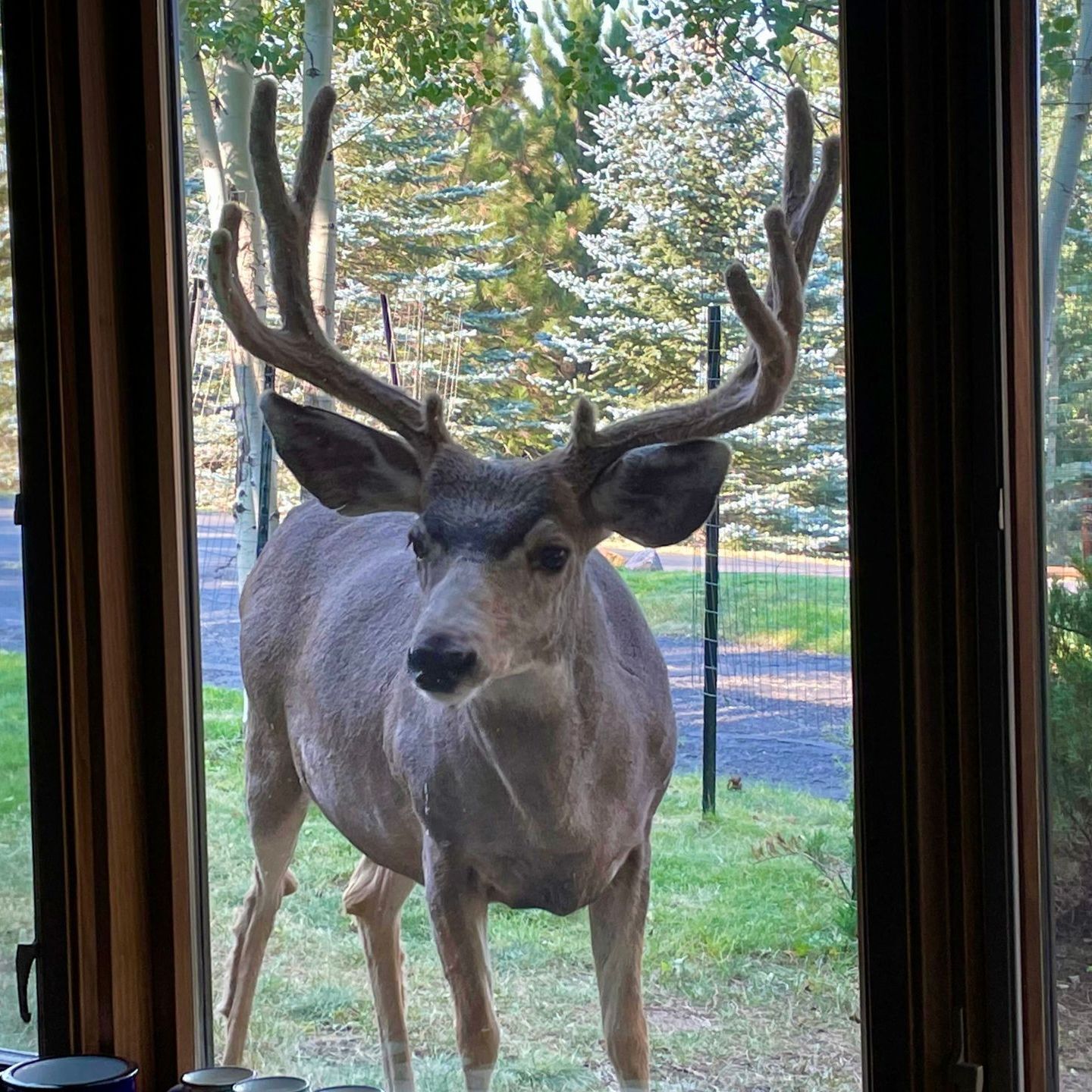 We live near the Big Thompson River, a river the elk follow from Moraine Park into Estes Park at the end of the rut. It’s not unusual for us to see elk, but this guy looked like he was ready to climb the steps to join us for a legal rerun.